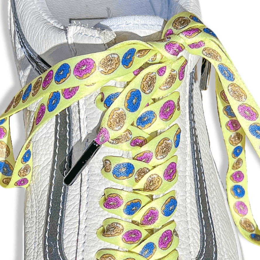 Donut shoelaces flat 100% recycled premium printed shoelaces in adult and child sizes.
