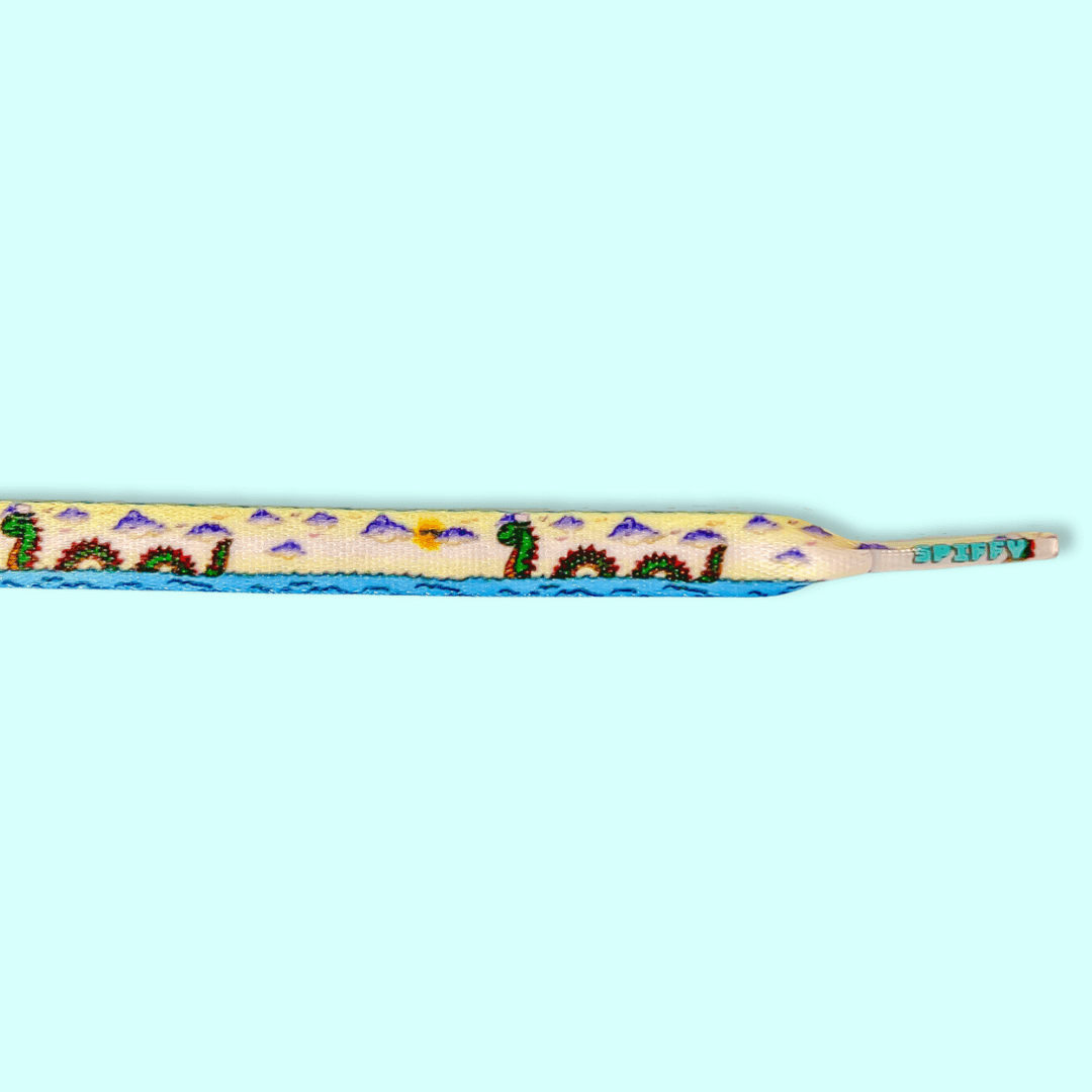 Sea monster shoelaces flat 100% recycled premium printed shoelaces in adult and child sizes.